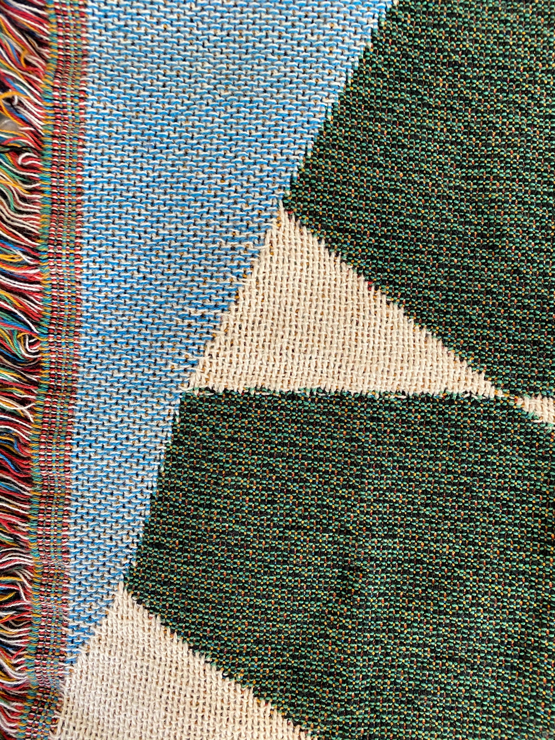 - Finished with Multi-Colored Braided Fringe Ends